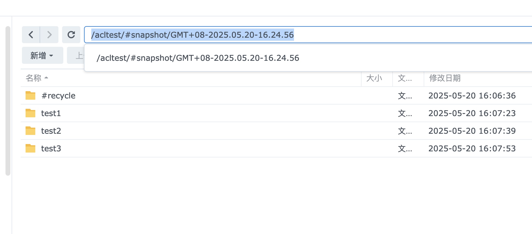例如共享文件夹的快照路径是/volume1/acltest/#snapshot/GMT+08-2025.05.20-16.24.56