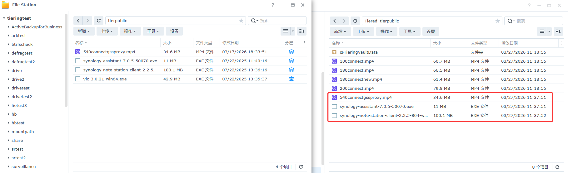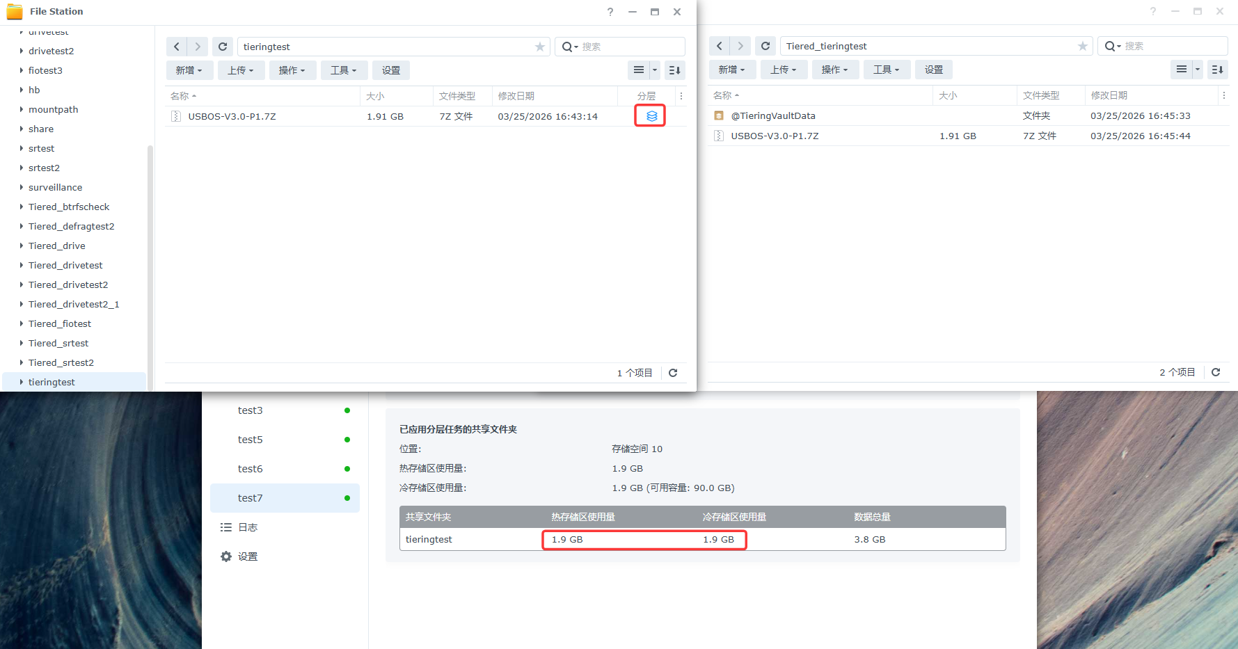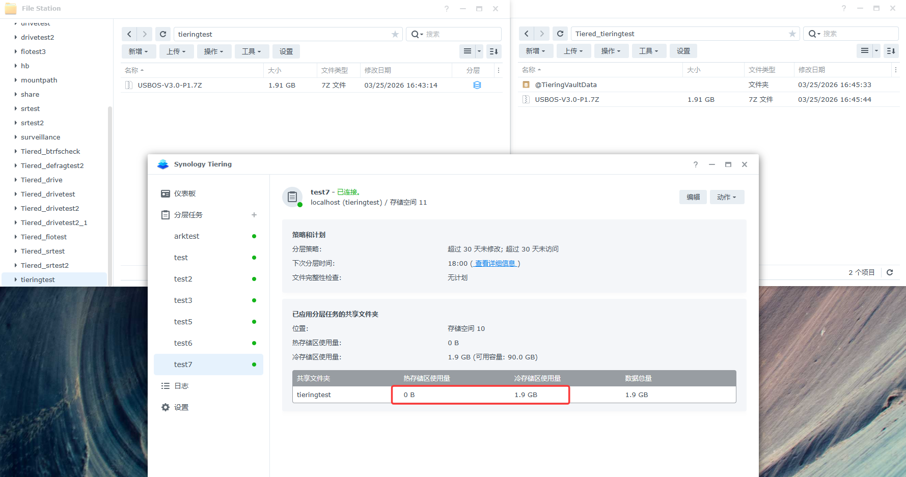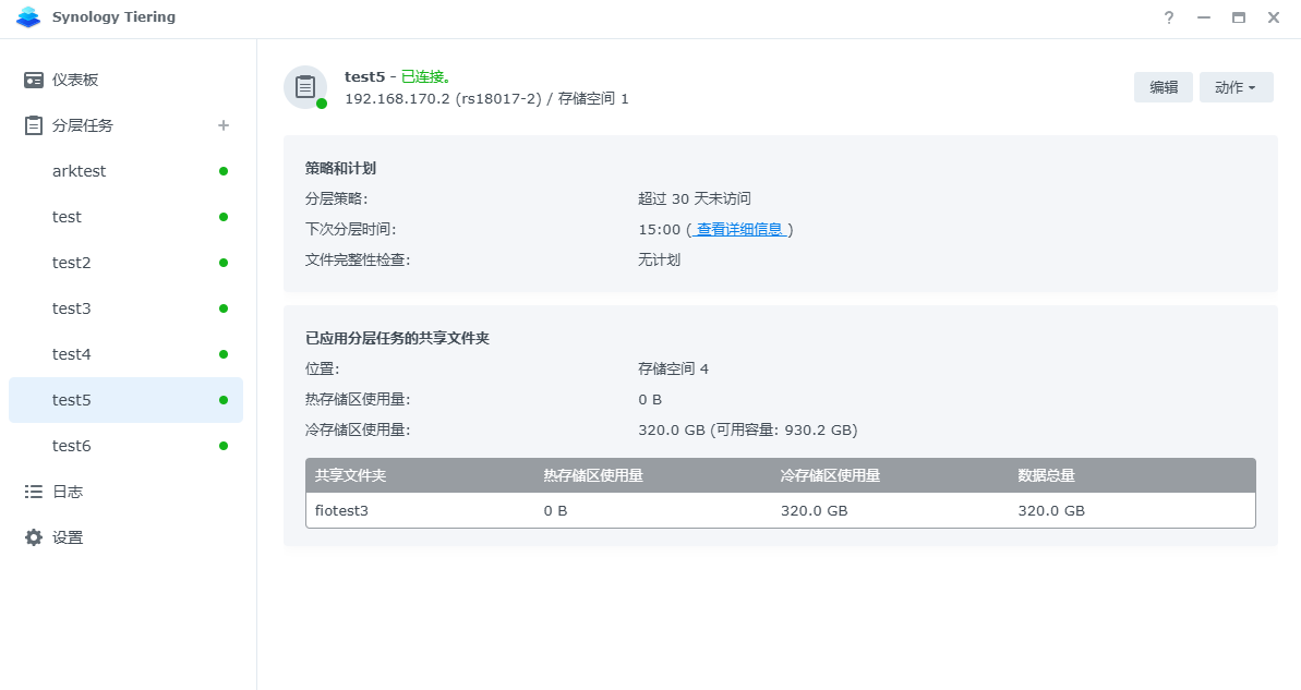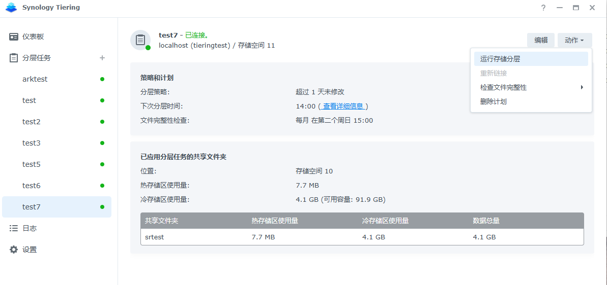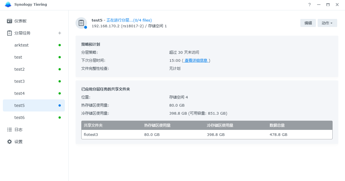 在分层任务中手动运行存储分层时会参考分层将符合条件的文件分层到冷层共享文件夹: