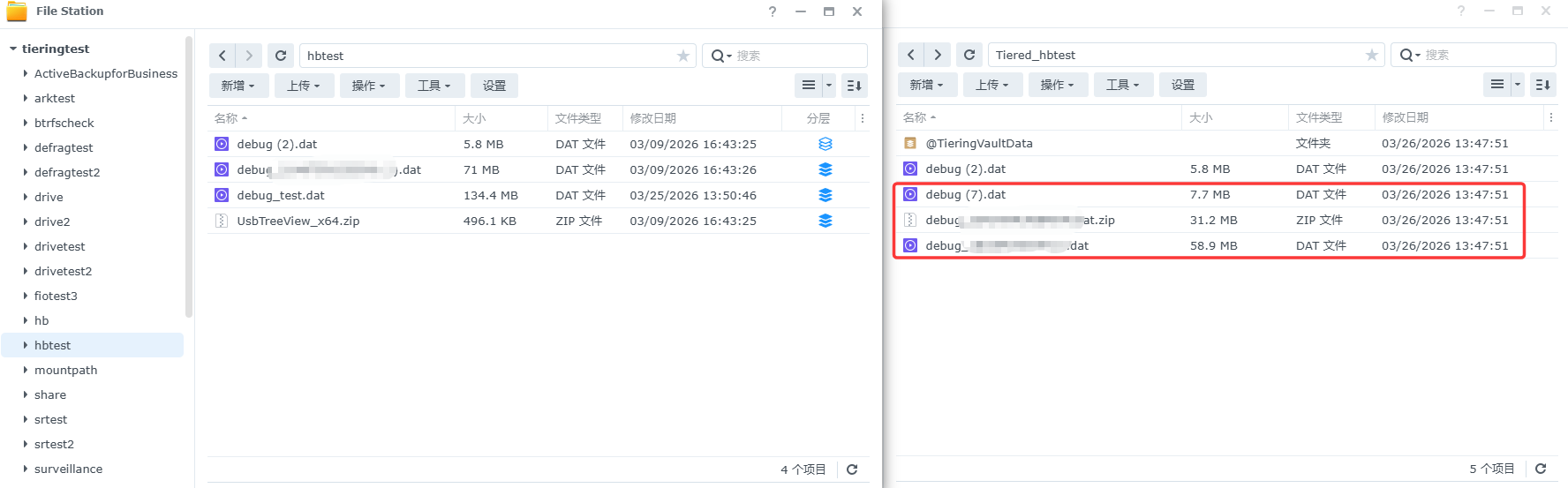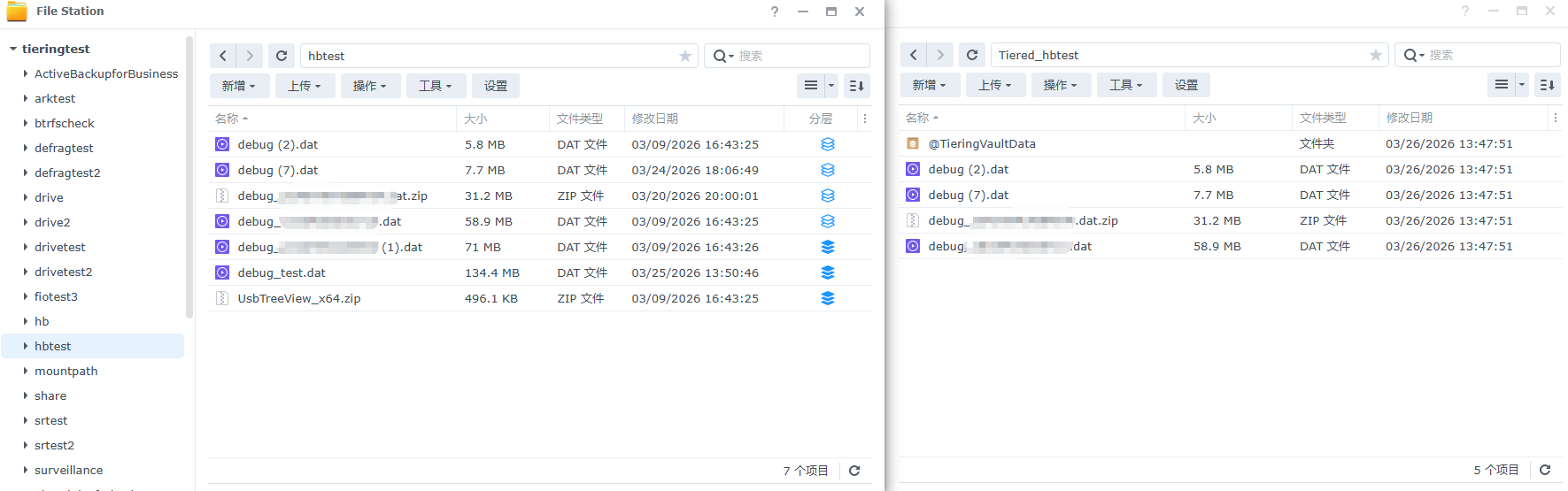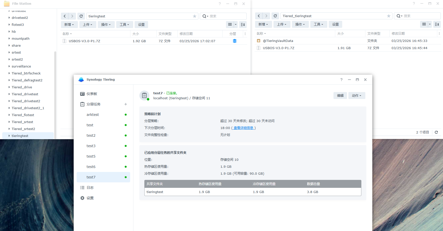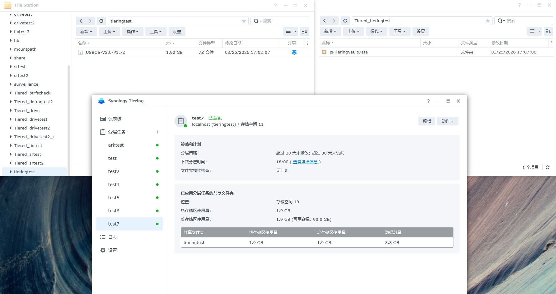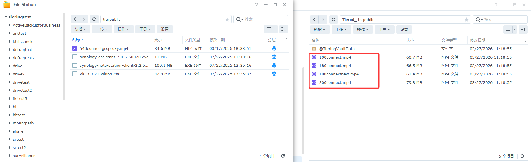 在分层任务中手动运行存储分层时会参考分层将符合条件的文件分层到冷层共享文件夹: