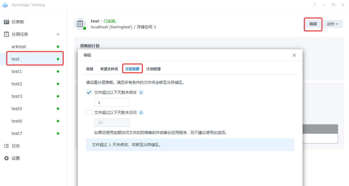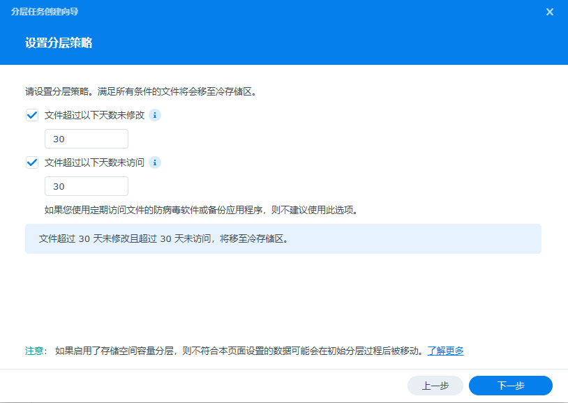 分层策略,在运行手动或计划分层模式时会参考该策略将符合条件的文件分层到冷层共享文件夹:
