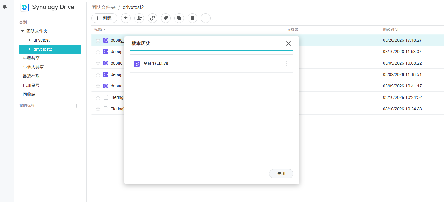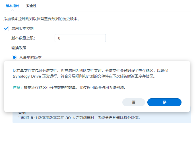 配置被Drive server作为团队文件夹的共享文件夹的分层任务时会丢失共享文件夹中所有文件历史版本。当前文件、共享链接、权限不受影响。
