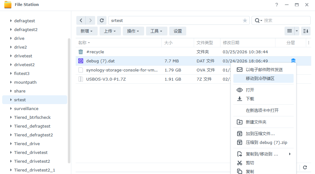 在File Station中可以通过选择文件或文件夹手动进行分层:
