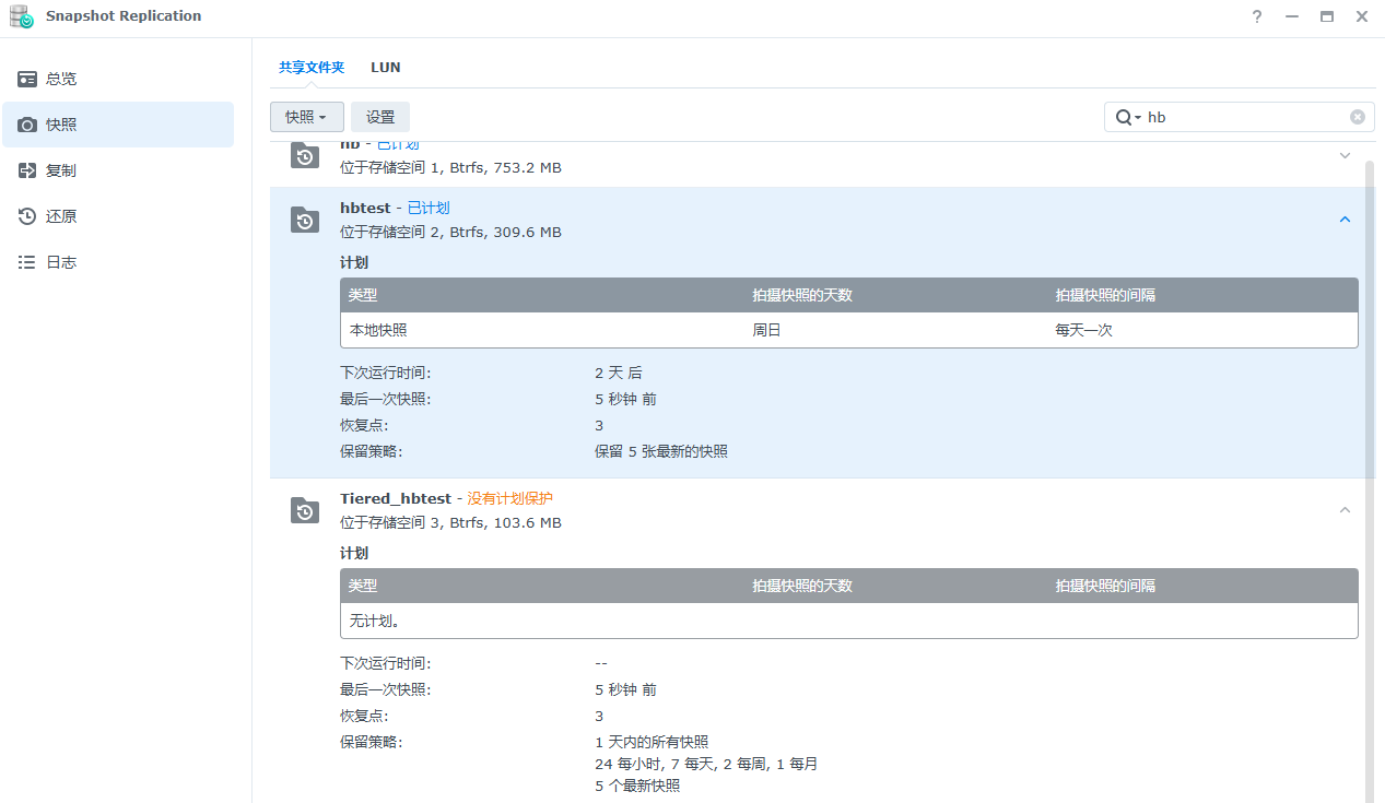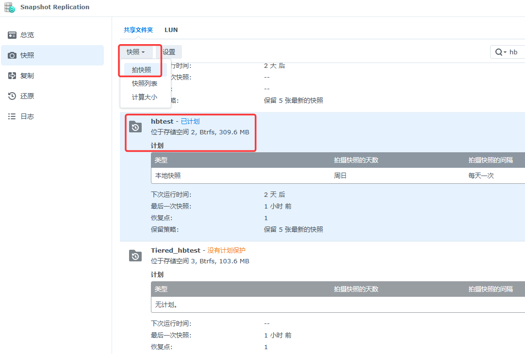 在Snapshot Replication中选择热层共享文件夹进行快照拍摄: