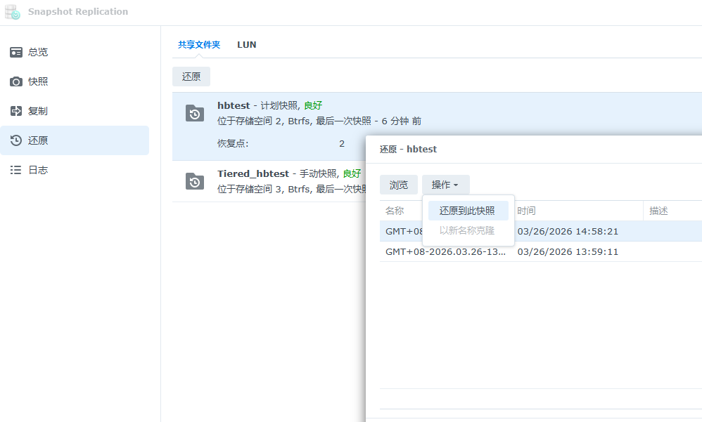 在Snapshot Replication中选择热层共享文件夹进行快照还原: