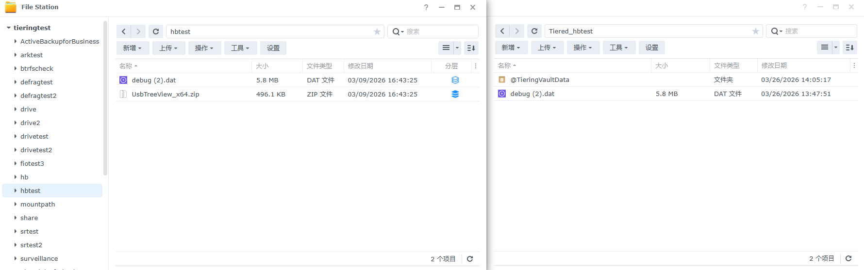 热层共享文件夹与冷层共享文件夹内所有文件及分层状态恢复:
