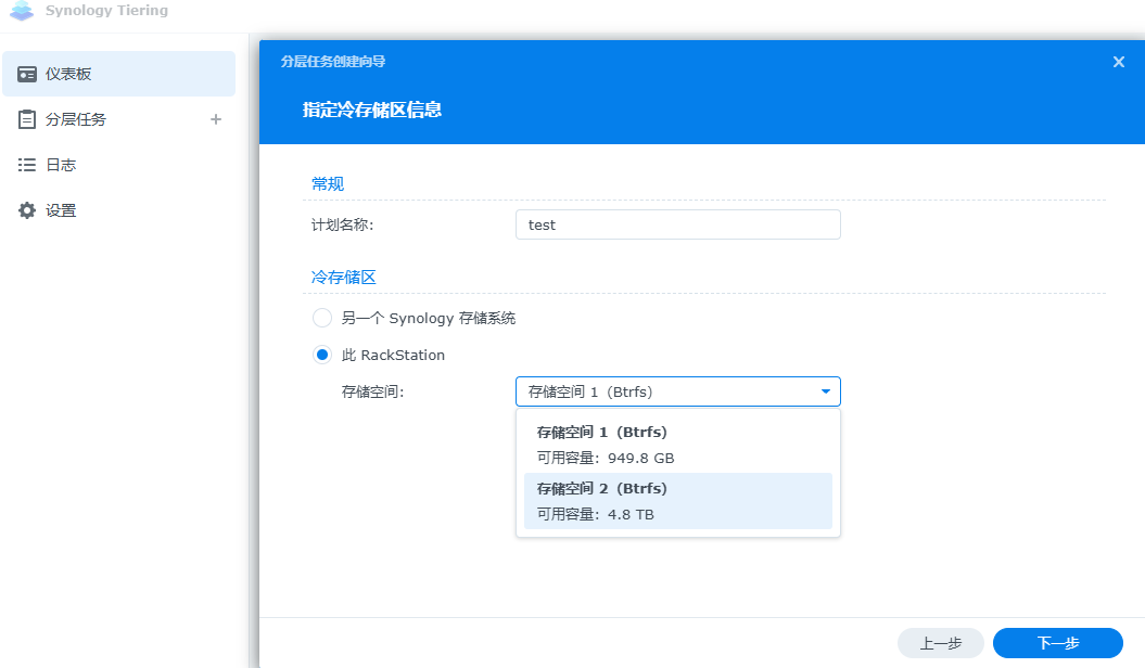 选择此Rackstation时只需要选择冷层所在的存储空间: