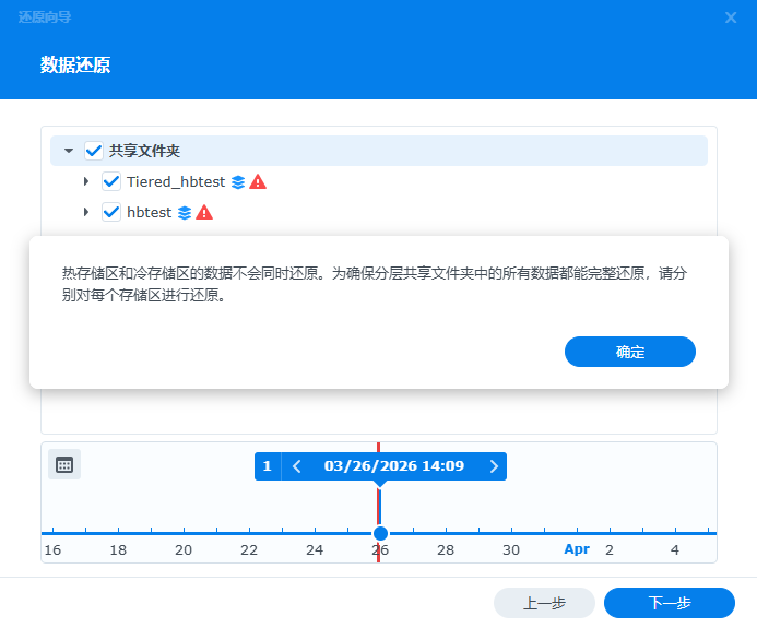 在Hyper Backup中同时对热层共享文件夹以及冷层共享文件夹进行还原: