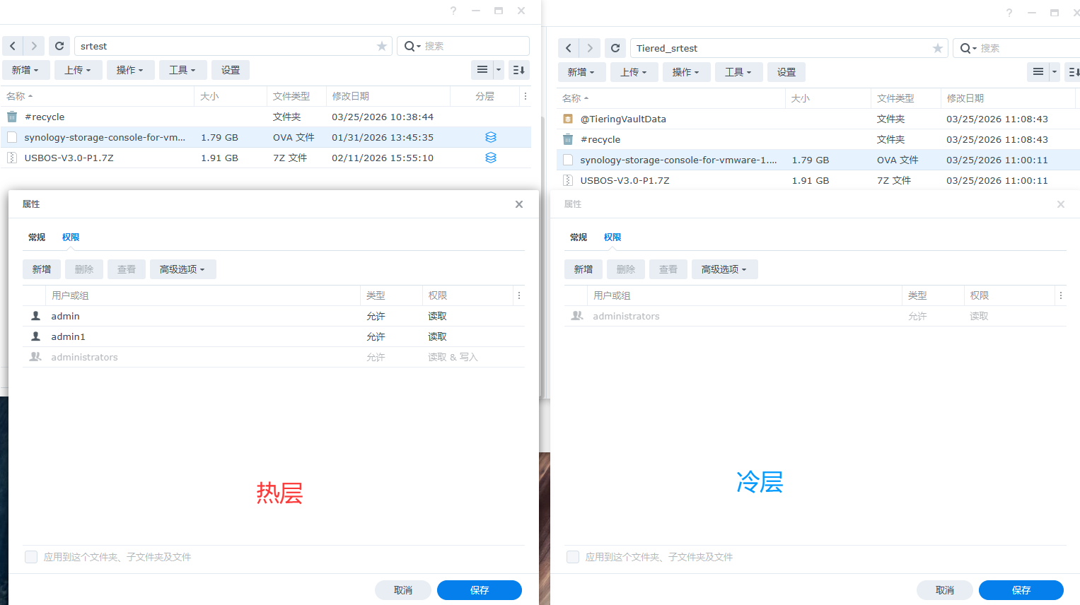 热层文件及文件夹的权限并不会被一并转移至冷层: