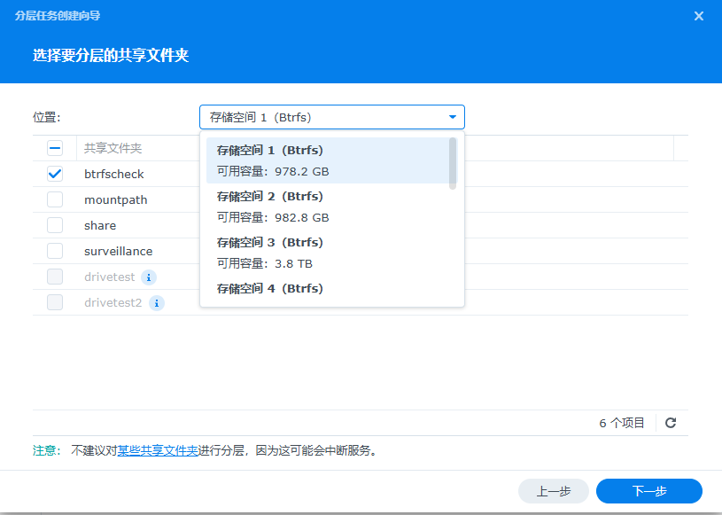 仅位于 Btrfs 存储空间中的共享文件夹可被加入计划